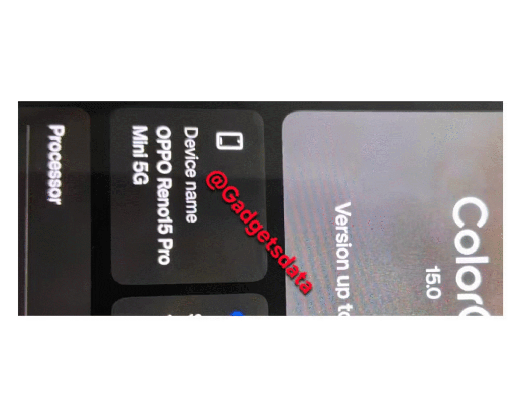 लीक की जानकारी टिपस्टर GadgetsData ने शेयर की है। फोटो में डिवाइस की ‘About Phone’ सेटिंग्स टैब खुली हुई दिखाई दे रही है, जिसमें फोन का नाम Reno15 Pro Mini लिखा है।